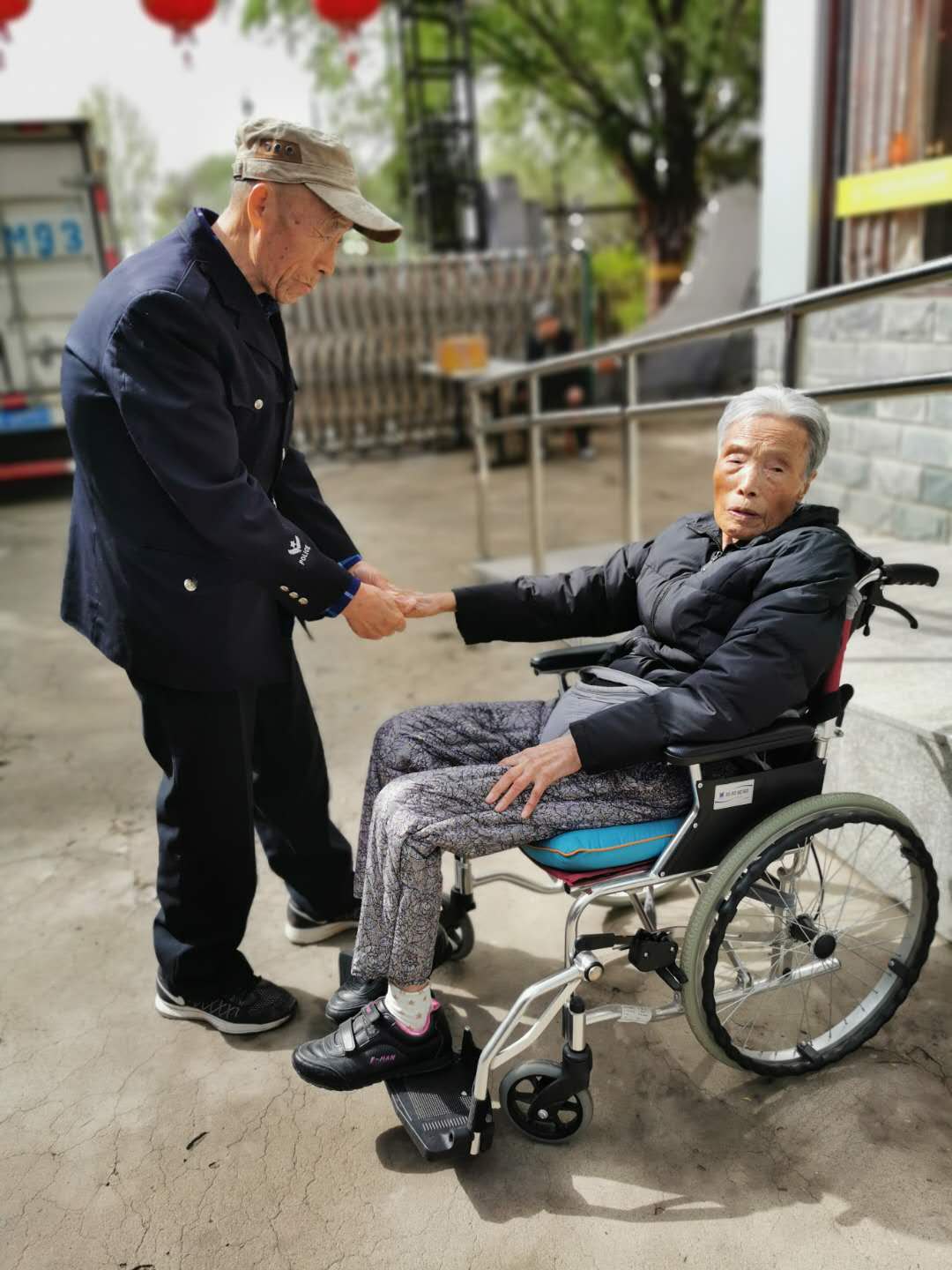昨晚下了一场雨,今天天气格外好,奶奶也在院里的小庭院晒太阳了,爷爷一边逗奶奶开心,一边帮奶奶按摩。我真的好羡慕这样白头偕老的爱情呢!
