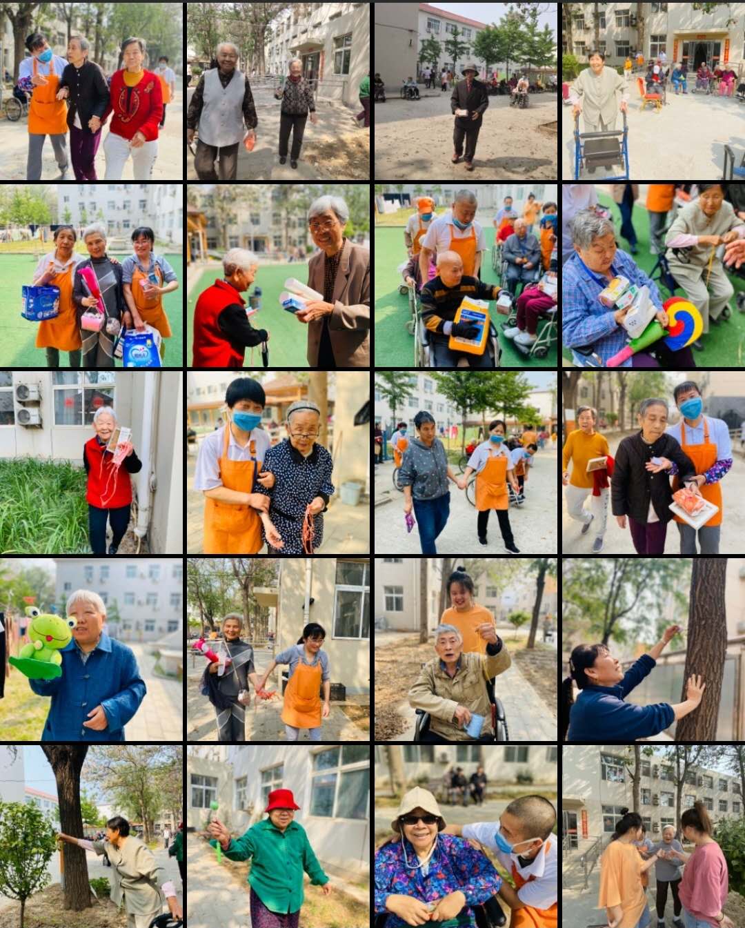 今天可是劳动者的节日,我们可要好好祝福辛苦了一辈子的爷爷奶奶们惊喜快乐呀!我们自己当然也要乐一乐!院长说,今天的宗旨就是掏空库房,只要爷爷奶奶们开心!