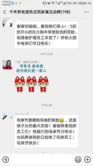 在今天这个温馨美丽的日子里,幸福就像花儿一样绽放在千禾养老的每个角落,千禾养老祝福天下所有的母亲:幸福!安康!美丽永远!
