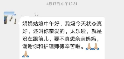 看到肖奶奶的欢喜笑脸,看到家属的真诚留言,我们满满的欣慰,感觉我们的工作做到老人和家属的心里了。感谢肖奶奶家属的理解和支持!祝福肖奶奶更加健康、更加快乐!也祝福所有的爷爷奶奶们平安喜乐!