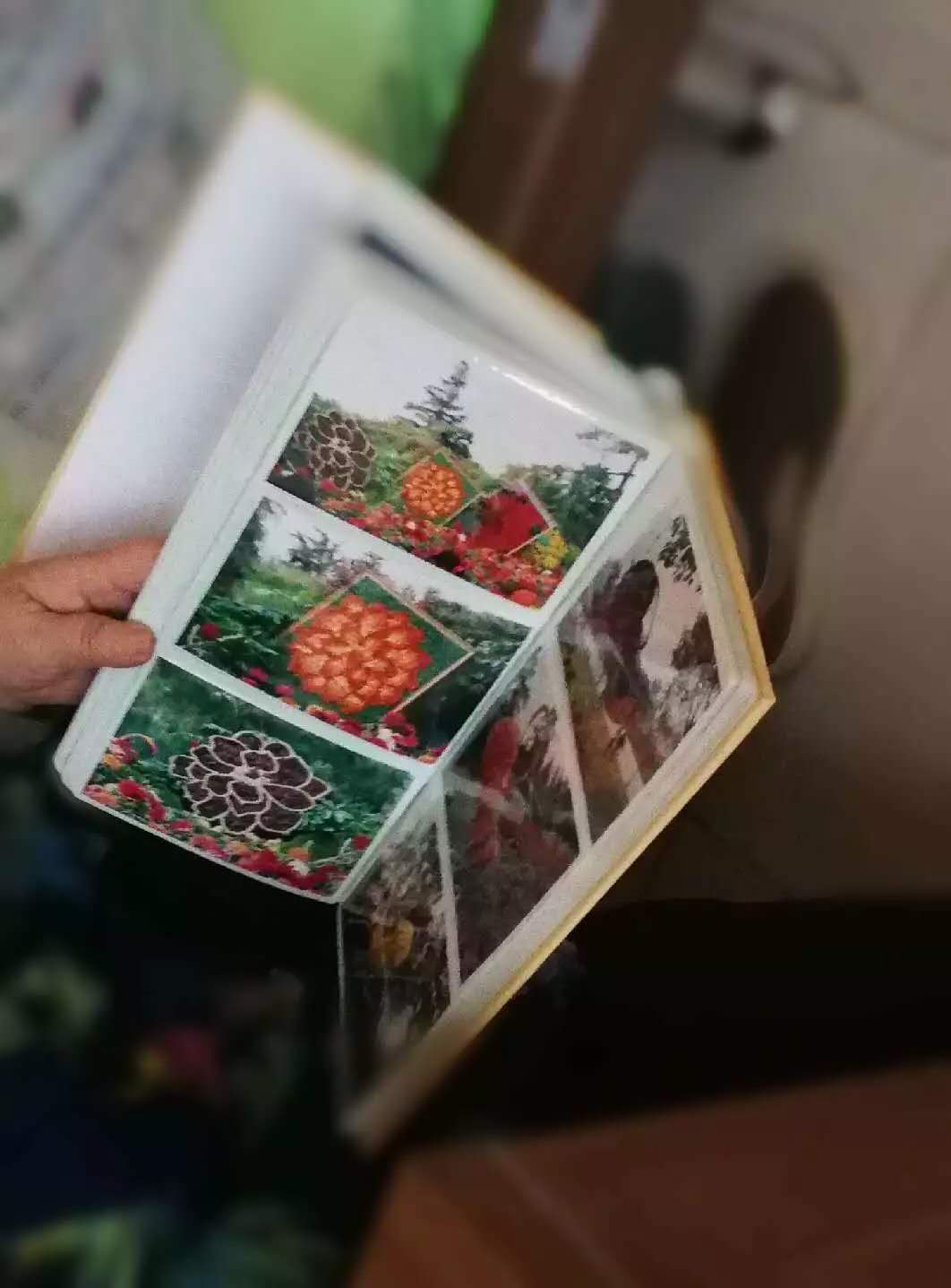 “你说一个人一旦喜欢上摄影,忙不忙吧?我从94年开始拍摄,连续拍了17年。每年10月1日我就会跑坏一双鞋,北京天安门前啊,各大公园里啊,都摆出不一样的精彩图案来庆祝国庆,就连犄角旮旯的造型人家也是用心做的,好看的我能不拍吗?我都得找到,拍到,拍完了我还得冲洗成照片。地上这一箱子相册里都装着我那时候拍的宝贝照片,都是作品哪。”
