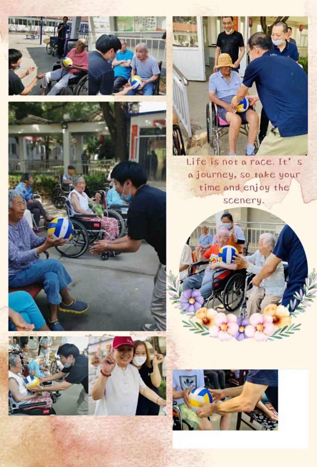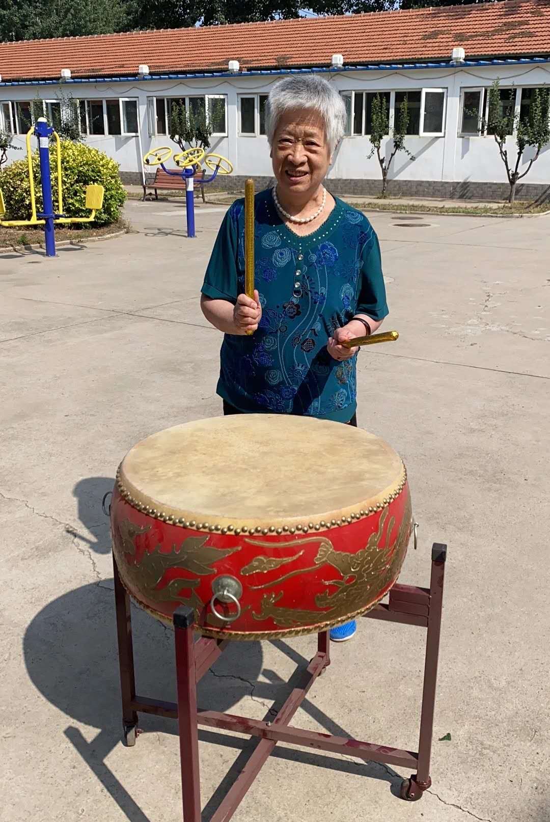 工作人员特意安排李奶奶击鼓,活动一开始,李奶奶便开始了有力的击鼓“梆梆梆”,每当球传到某位爷爷奶奶手中,都能听到爷爷奶奶们欢快的歌声,现场不绝于耳的笑声、鼓掌声把整个大院都变成了热烈的喜庆剧场!