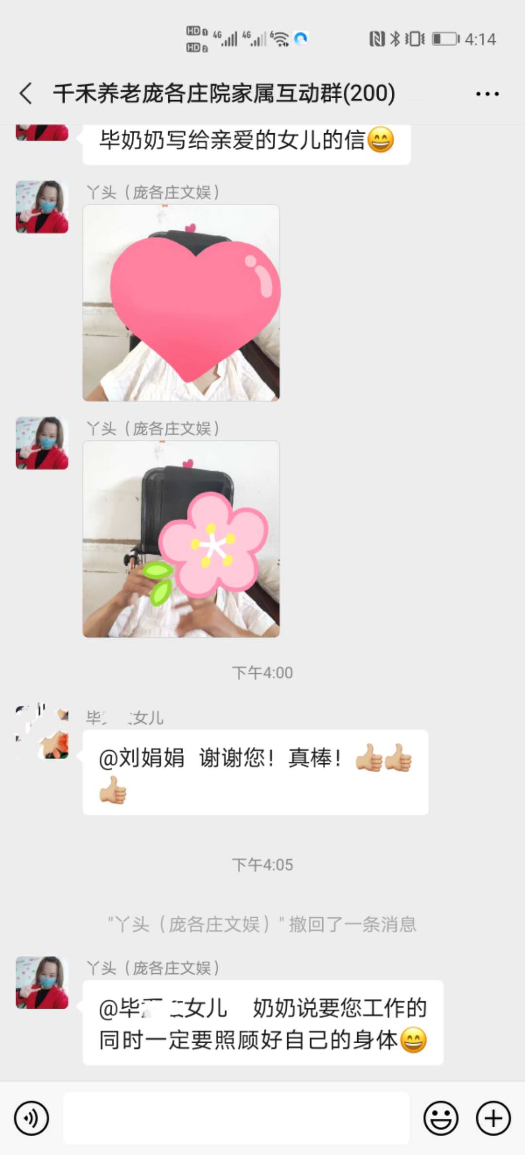 疫情期间,千禾养老各分院除了为爷爷奶奶和家人们增加视频连线,更多地拍照片和视频发给家属,最近也鼓励爷爷奶奶们拿起纸和笔给儿女们写信,见字如见面,希望让家人更放心!
