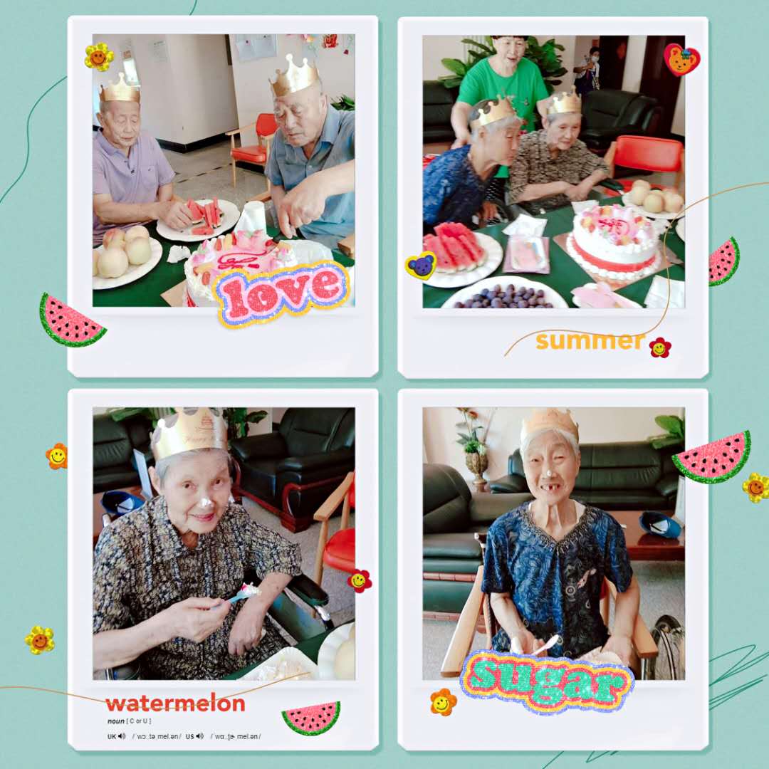 千禾养老的八月生日会,也如夏阳一般绚丽、蓬勃。工作人员和爷爷奶奶们一起点燃生日蜡烛,唱起生日歌,爷爷奶奶们的脸上始终绽放着美丽的笑容,时间仿佛凝聚在这一刻,千禾养老向每位寿星们献上生日祝福——平安、健康、快乐!