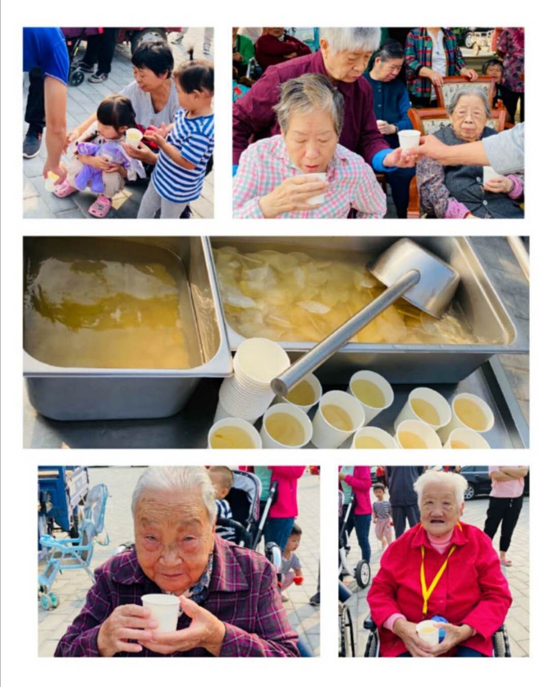 膳食部还精心熬制了清甜的梨汤供爷爷奶奶们享用,工作人员也为前来观看演出的大小观众送上贴心的服务。
