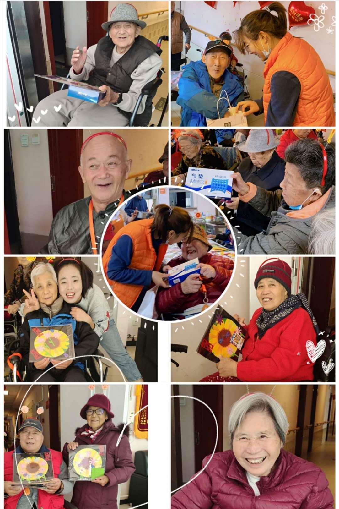 重阳节里,我们除了听爷爷奶奶讲故事,还和爷爷奶奶一起唱歌、看节目、收礼物、手工制作菊花贴纸。中国人有重阳节赏菊和饮菊花酒的习俗,唐·孟浩然《过故人庄》:“待到重阳日,还来就菊花。”菊花被赋予了吉祥、长寿的含义。在此我们祝福所有的爷爷奶奶们重阳节快乐,幸福安康!