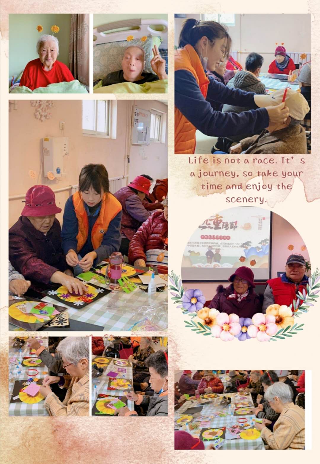 入住在千禾养老的长辈们都曾是奋战在各行各业一线的专家学者、行业精英、无名英雄,都曾经披荆斩棘的奋斗过,有的还经历过惊心动魄的战争。重阳节之际,我们很自豪地围坐在爷爷奶奶身边,听他们讲述从前的故事,感受他们的精神风骨。他们经历过战争,建构过历史,这些经历和故事值得我们去记录和传播,以表达作为晚辈的我们对那些峥嵘岁月的尊重,传承先辈们不畏浮云遮望眼,克服困难艰苦奋斗的精神,为社会贡献自己的力量。