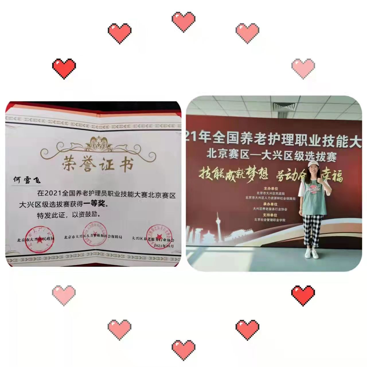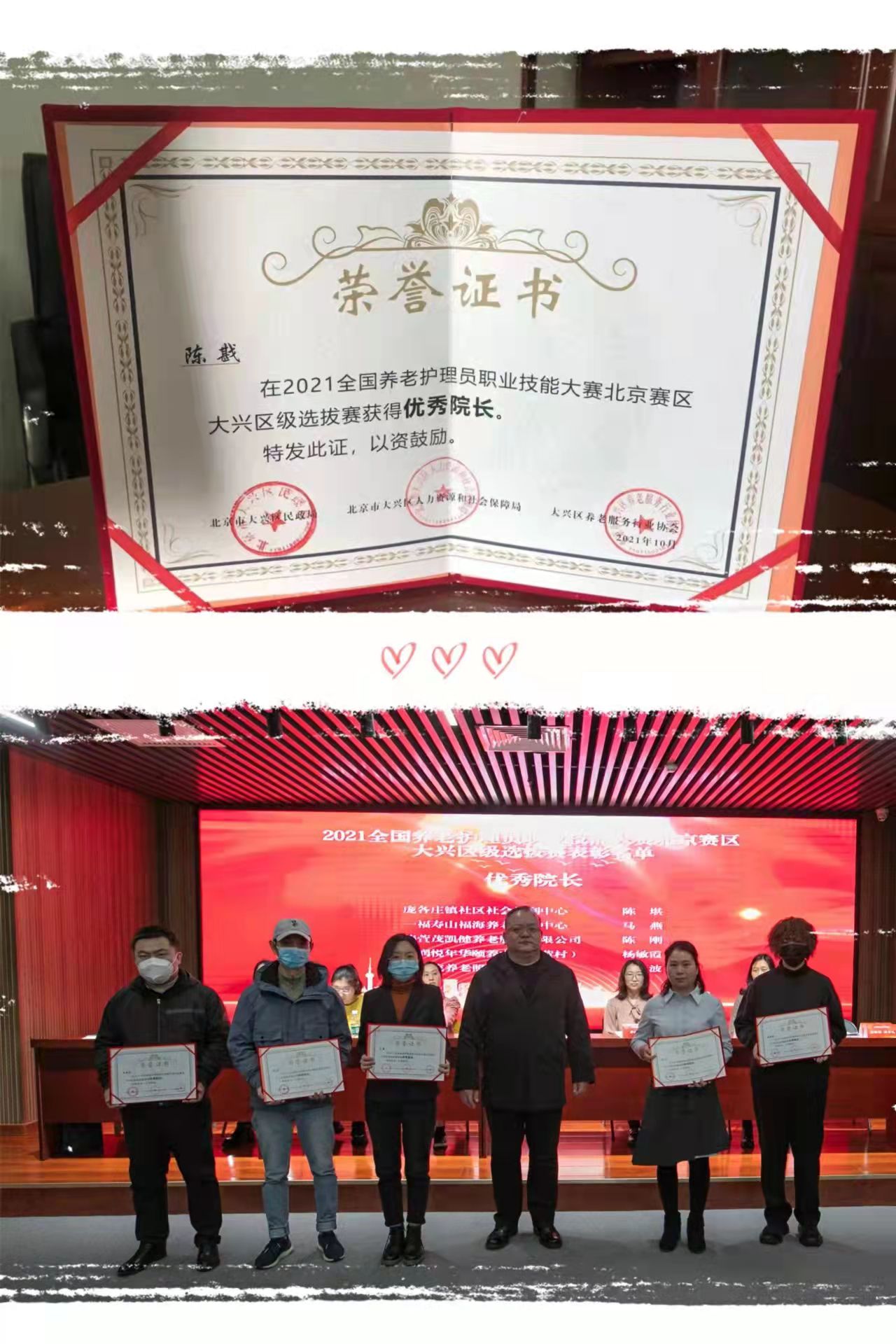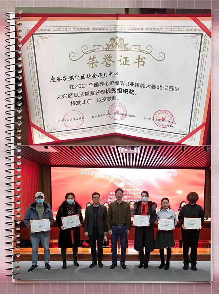 千禾养老庞各庄院(庞各庄社区社会福利中心)获得优秀组织奖;千禾养老庞各庄院陈戡获得优秀院长荣誉;千禾养老庞各庄院“95后”何雪飞,经过层层考验,最终获得大兴区级选拔赛一等奖的荣誉。掌声祝贺!