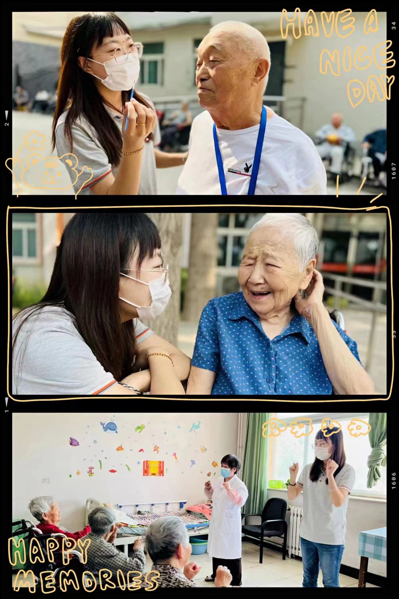 刚离开学校来到养老院时,孙皓楠多少有点不适应。“你每天看这些老人,就没想过自己老了以后会是什么样吗?”大一届的学哥问她。“我没想过,我现在还年轻,为什么要想老了以后的样子。”但是,晚上下班她躺在床上,师兄的这个问题又开始萦绕回旋。“没错,我必须承认,老了以后,也会变成他们的样子。所以我要更加珍惜现在的生活,当下的每分每秒都是珍贵的。我要庆幸父母此时此刻的年轻和健康。”