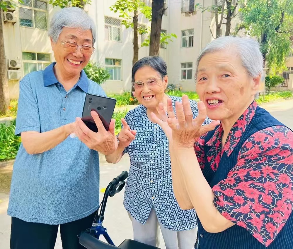 2022年7月3日。下午,三位奶奶围在一起观看视频,欢声笑语。
