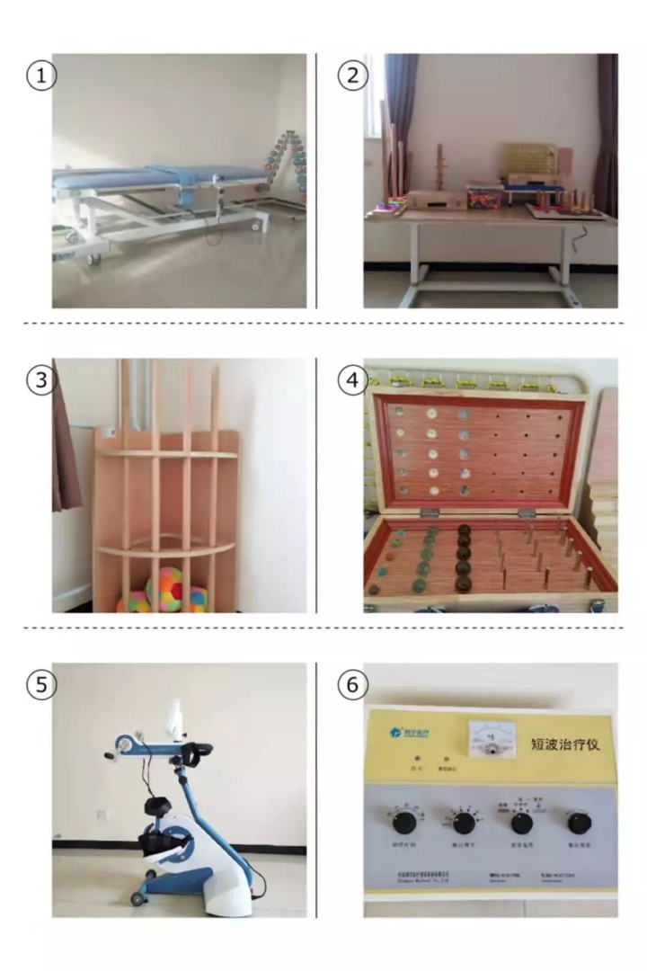 康复中心目前配有短波治疗仪、电脑中频治疗仪、康复训练套件、康复训练跑步机、康复训练阶梯、平衡杠、直立床等康复设备。