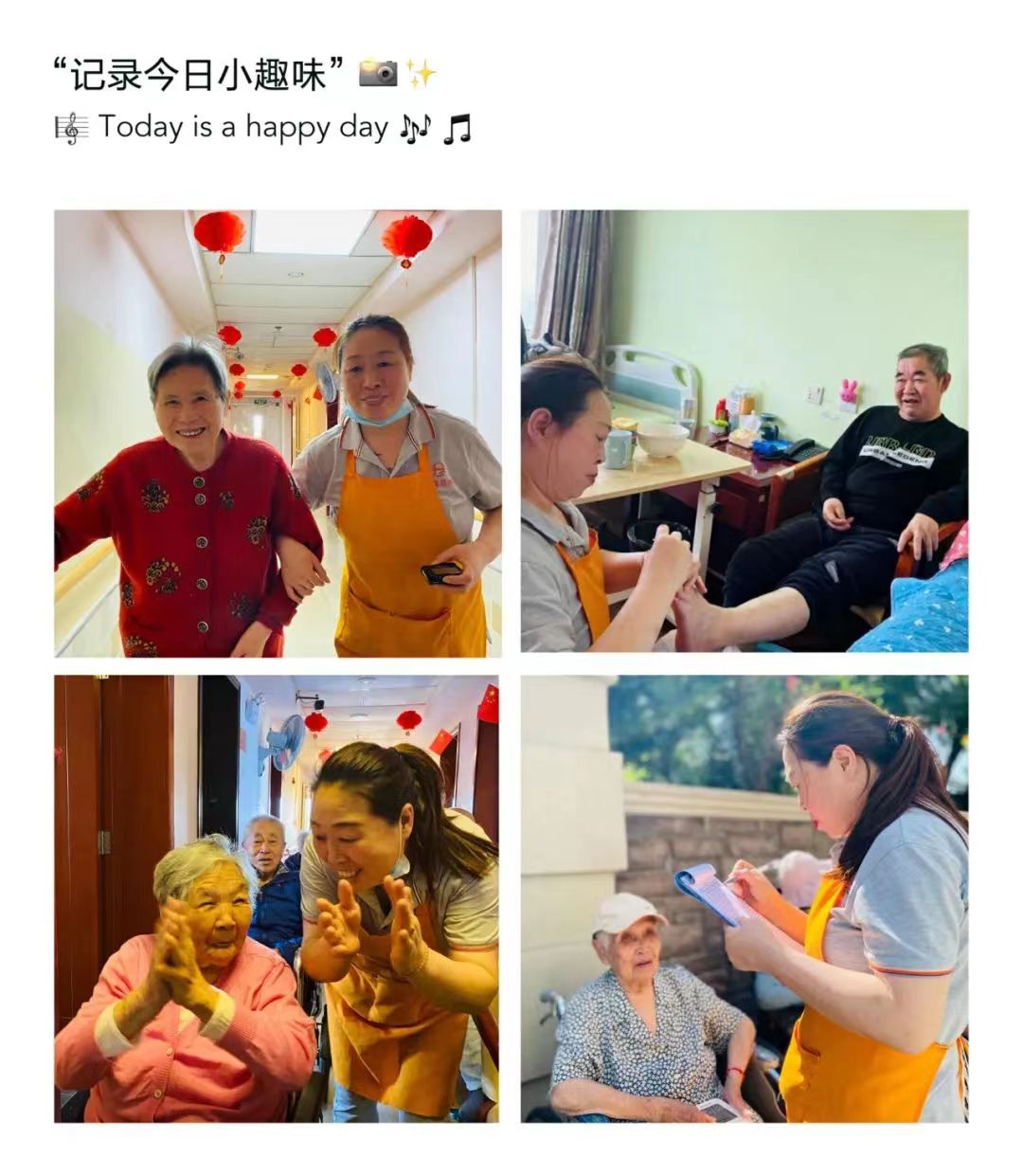 马院和其他同事从我老乡那里了解到我家里的情况,仔细询问我平常的兴趣爱好,知道我平常喜欢打牌,喜欢跳舞唱歌。于是每天在休息或者组织老人做娱乐活动时,热情邀请我跳舞、唱歌、打牌,有时我忙不开,其他同事就来帮我工作,让我去活动。我被大家的热情感染,转移了堵在心里的结,学会了和老人沟通,知道怎么理解认知症老人的行为习惯,心情豁然开朗。