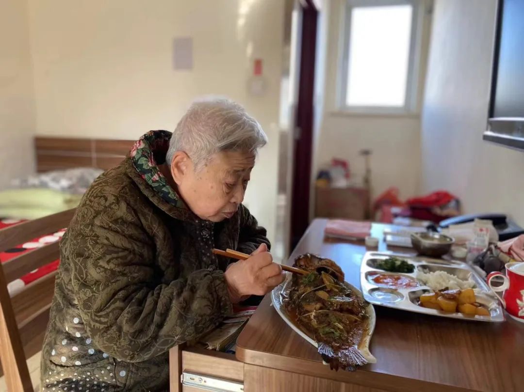 师奶奶最爱吃鱼,一说吃鱼就胃口大开。疫情期间家属给奶奶订好鱼,院里做好给奶奶送过去。“哎哟,这条大鱼看着真不错哎,真香哎!”师奶奶瞅着鱼眉开眼笑,一个劲地咂嘴赞叹不已。(拍摄时间:2023年1月3日)