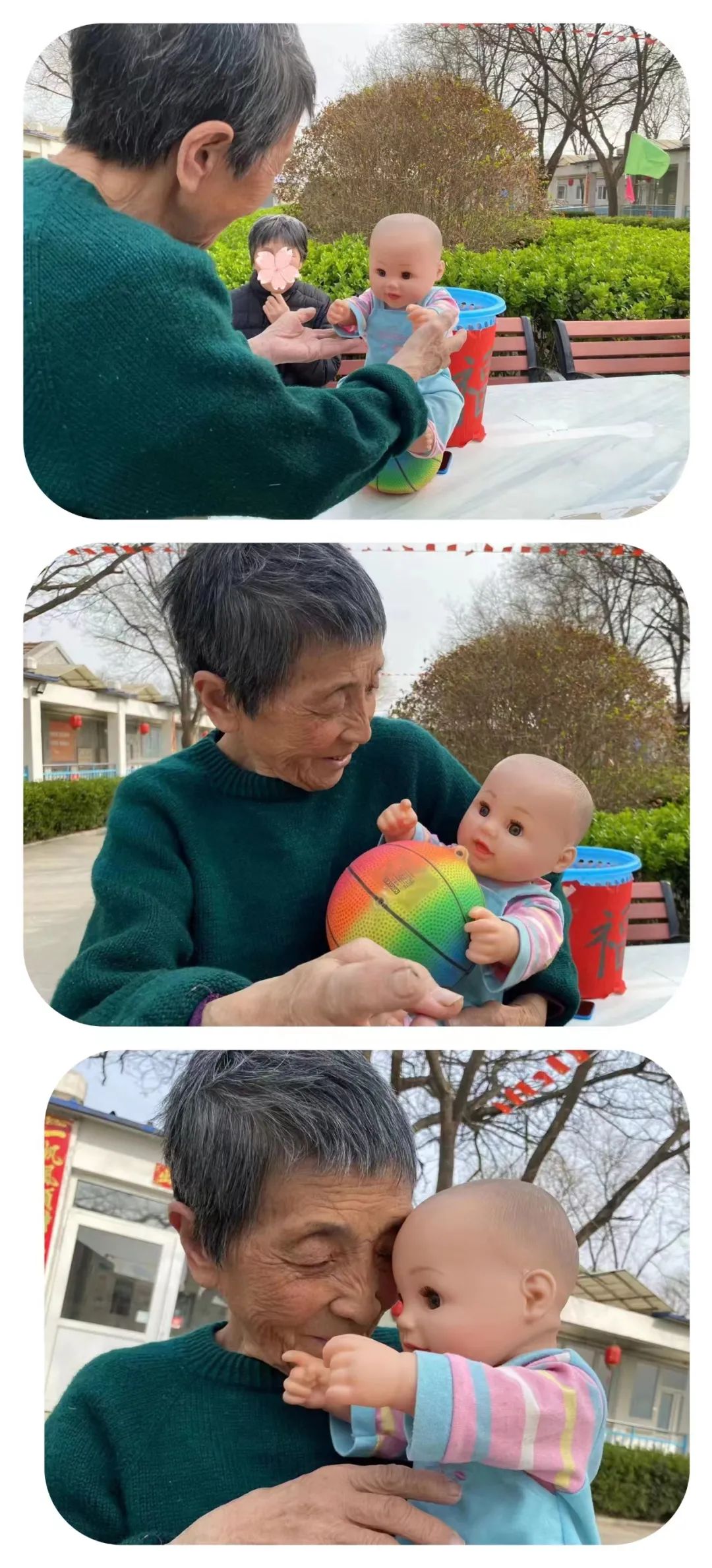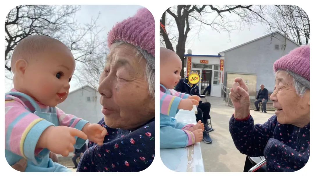 奶奶们都管娃娃们叫宝贝儿或小宝宝。虽然不知道宝宝们的名字,但通常她们都会反过来问:“宝贝儿,你叫什么名字呀?”奶奶们把娃娃当作自己的孩子,并将照顾娃娃作为日常生活的一部分,每天都很忙碌,哄睡觉、喂吃饭、带着晒太阳,一门心思全部用在了自己的“宝宝”身上,不徘徊,不焦虑了。每天充实且忙碌的生活着,这应该是唤起奶奶们年轻时做母亲照顾孩子们的亲切回忆吧。她们的母爱都充溢在看到娃娃们的那瞬间。(拍摄时间:2023年3月-4月) 摄影|郝佳(千禾养老庞各庄院 )