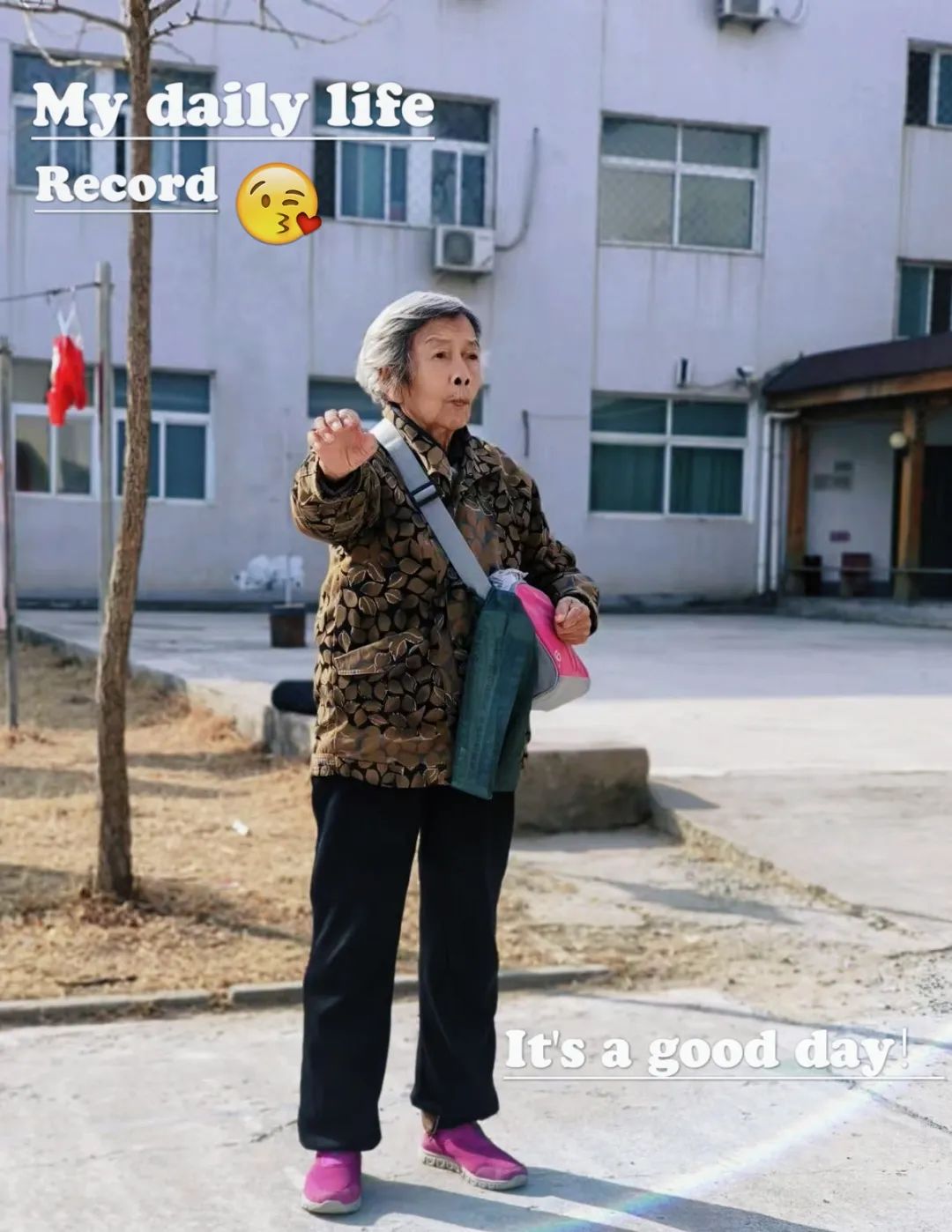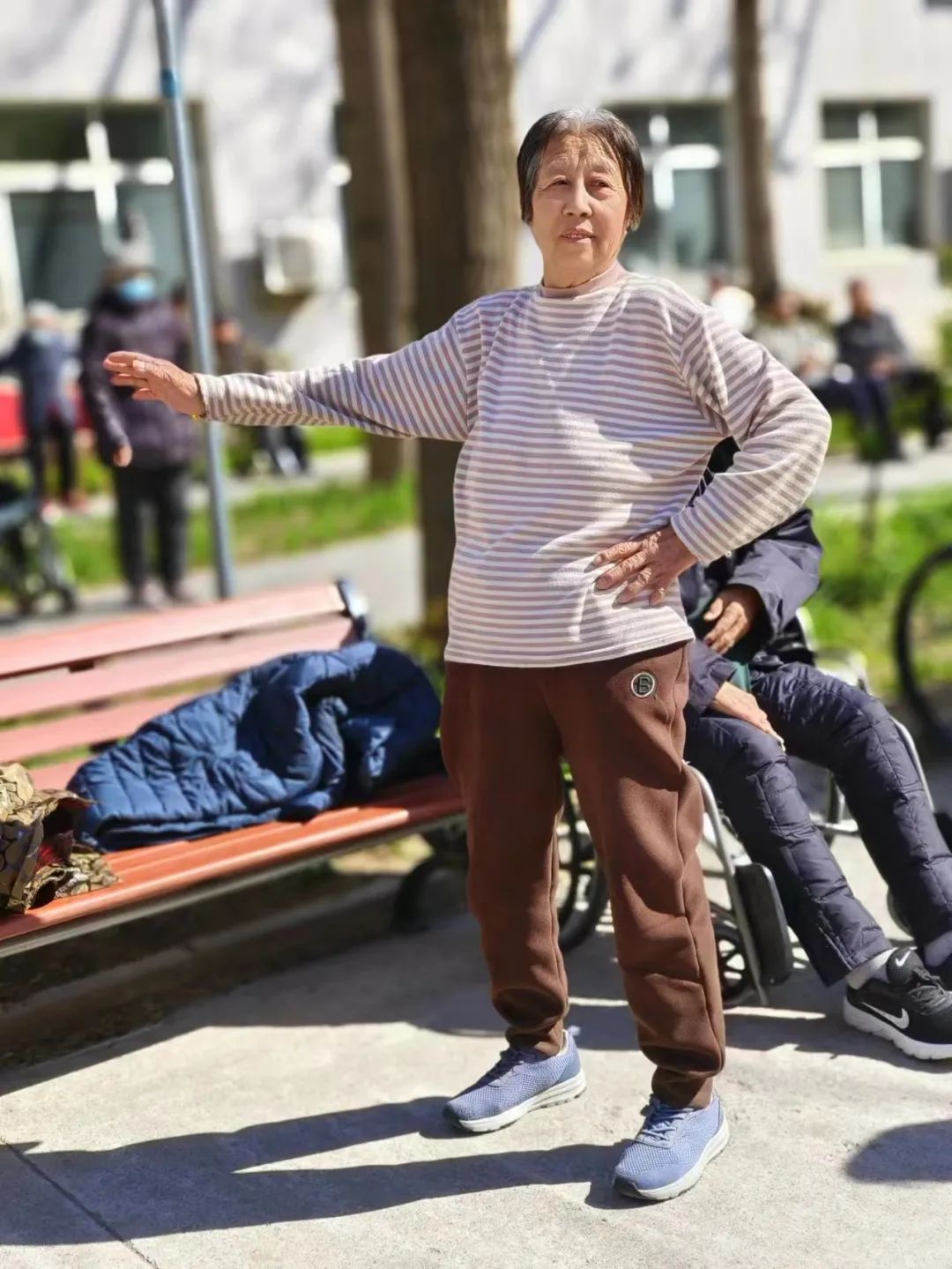 我们了解到奶奶比较爱运动,她自己常说人到六十古来稀,自己活到八十多了,就是爱运动。她常说她在读《黄帝内经》,我们为了更快和奶奶熟悉起来,常常请教她,奶奶心情渐渐开朗,每天做操都非常积极,让她教大家从《黄帝内经》上学来的动作。渐渐地,她也不排斥拍照了,给她拍照她都说谢谢。有时她还会说:“我都是老太太了,照什么呀!”我们会换着方式夸赞她,奶奶很开心。