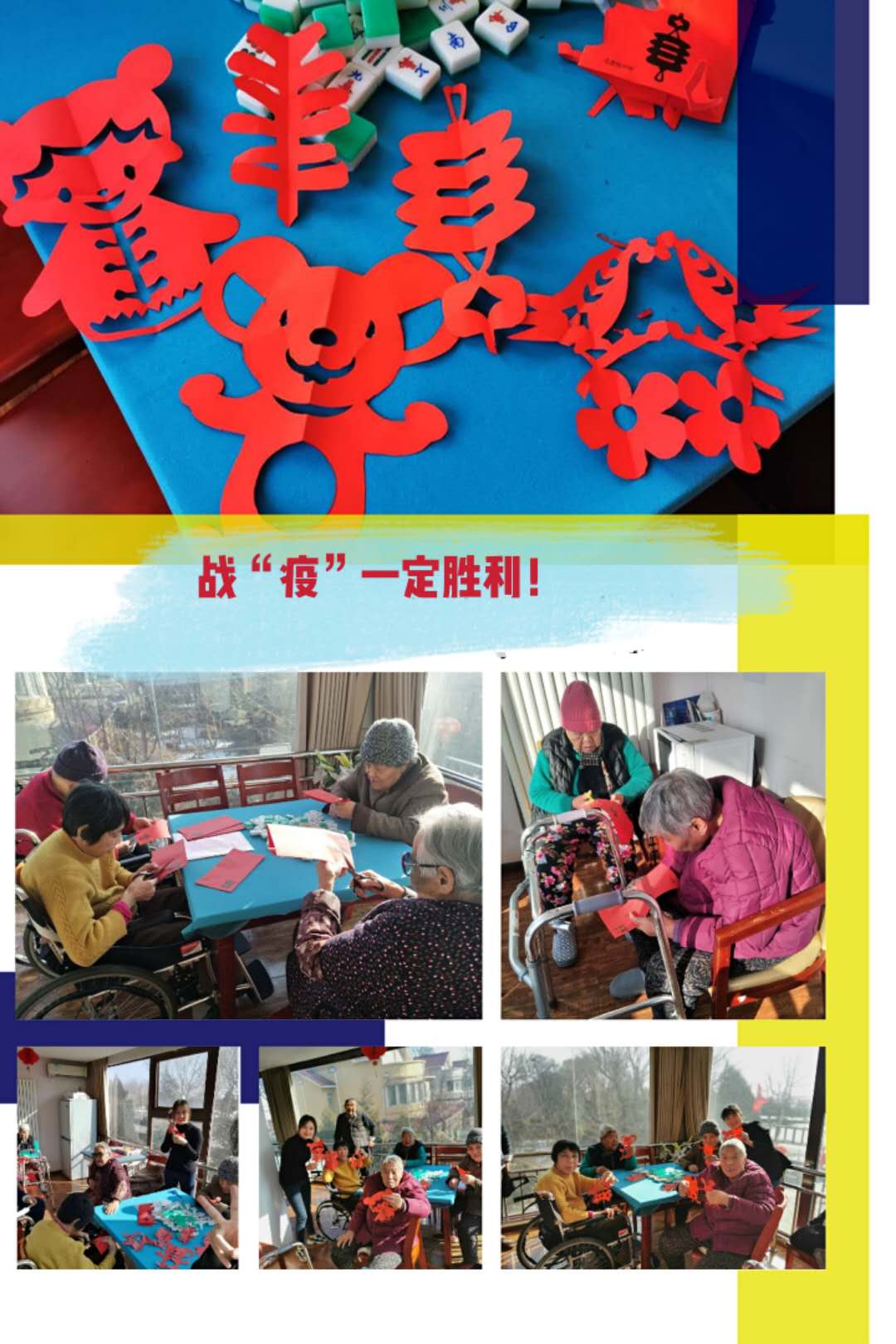 全国人民正在众志成城共同抗击疫情,院里的爷爷奶奶们和工作人员也希望力所能及为武汉加油!他们想了一个别出心裁的方式,一起用剪纸来祝愿一线的医护人员平安健康!