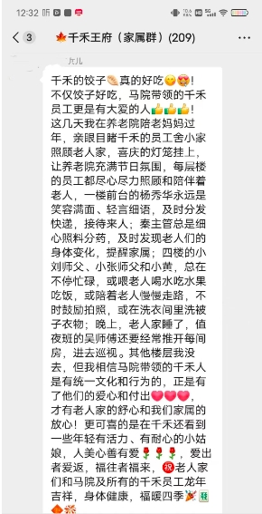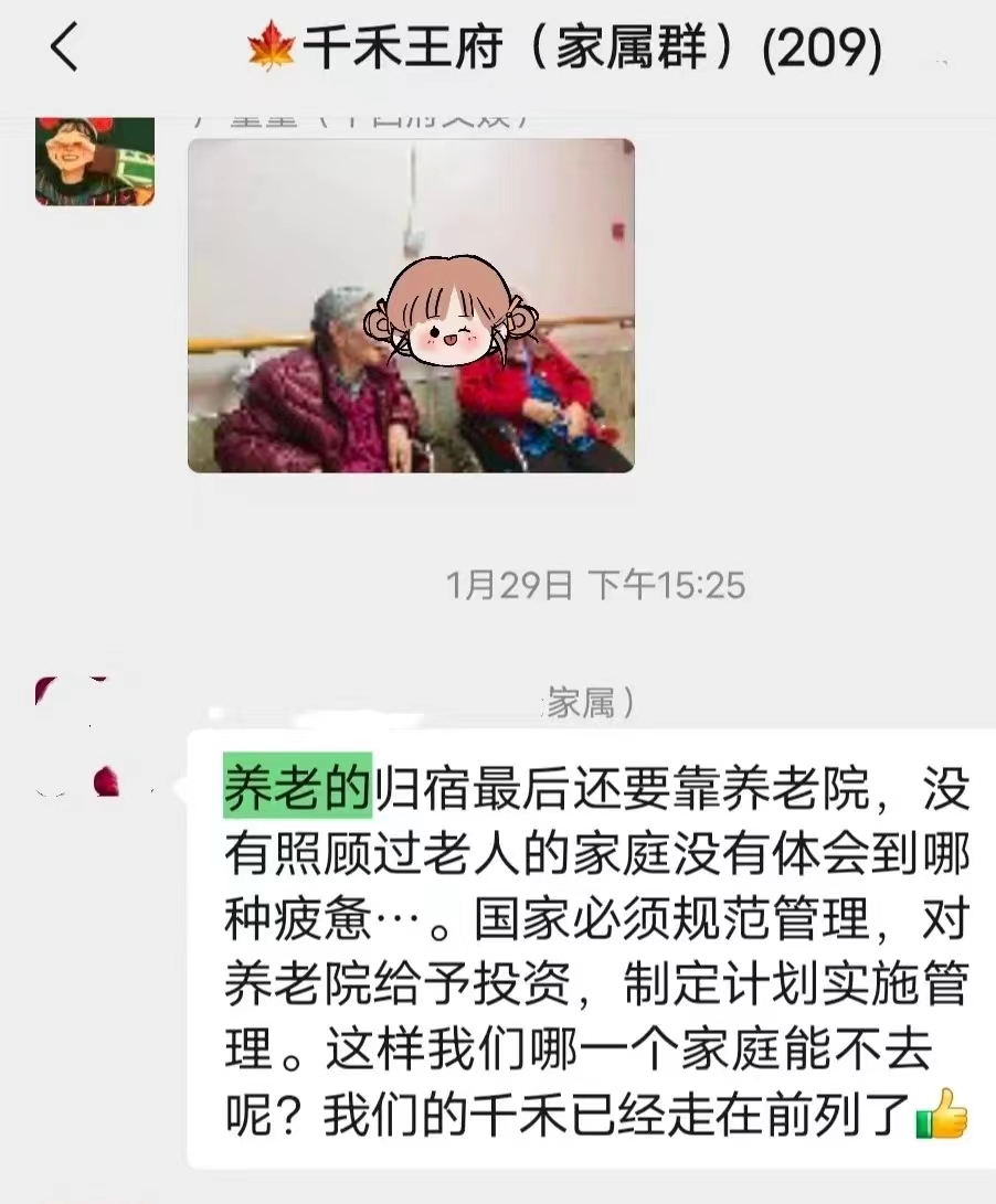 前一段时间,千禾连锁养老平西府院家属群里,有一位家属留言,引起小编的思考。