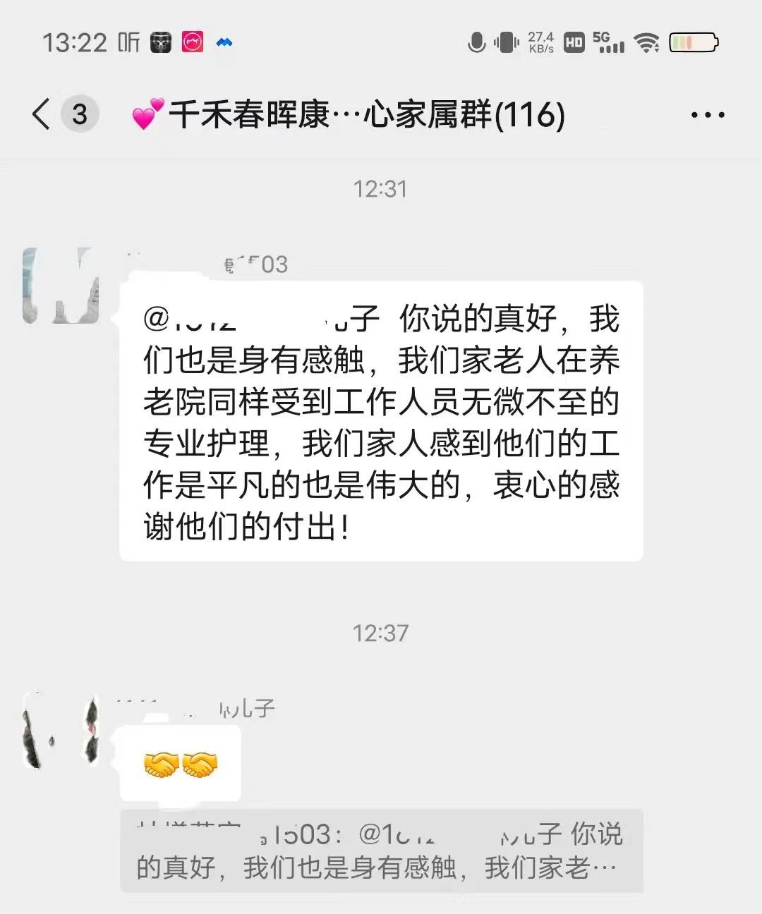 了解到阿姨以前爱跳舞唱歌,我们有意识给阿姨放些文艺节目,类似唱歌跳舞的,阿姨听着听着,也会跟着哼唱起来。每次家属来,都说看到老人和我们更亲。听到家属这么说,我很自豪。