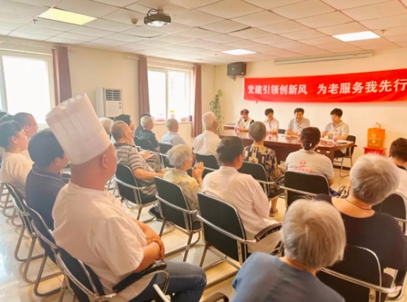 在活动当天,千禾老年学苑的邵姗娜院长主持会议,韩村河镇敬老院的刘颖红院长发表了重要讲话。随后,韩村河镇敬老院的党小组长杜明放带领全体党员、老人以及敬老院员工学习了《继往开来,新局有我》党课,回顾了党的成长历史,了解并学习了党的方针政策以及国家未来发展战略。