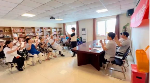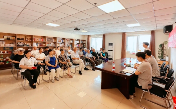 接下来的活动由邵院长介绍了“党建引领创新,为老服务我先行”项目。韩村河镇敬老院党小组在龙门生态园党总支的带领下启动了“阿尔兹海默病的自测与预防”健康项目。该项目旨在组建党员志愿者团队,吸纳社会各界爱心人士参与,通过科普宣传医学常识、脑科学知识和正确生活方式,减轻社会医疗资源压力,共同创造更美好的环境,保障长者的幸福晚年,远离阿尔兹海默病。该项目预计执行18个月,将服务不少于10000位老年人。