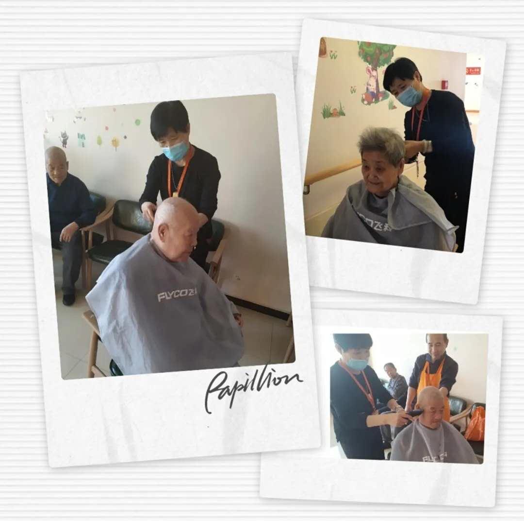 嘿!回龙观的霍主管大胆尝试,第一次给爷爷奶奶们理发,还颇有创新呢。
