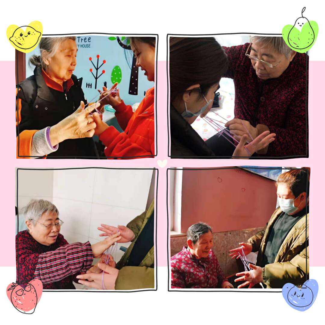 翻绳游戏依靠手指完成撑、压、挑、翻、勾、放等一些精微的动作,变成一幅幅图案,更需要左右手配合一致,需要每根手指巧妙地分工。在这一过程中,手指、手腕、双侧肢体的灵活性、精确性和实际操作能力都在考验中,每翻一次,就能出现一个新的花样,变变变!爷爷奶奶们玩得乐哈哈,完全变成魔术师。
